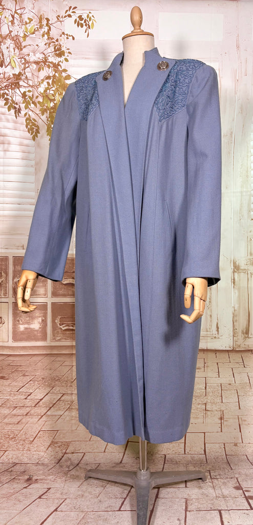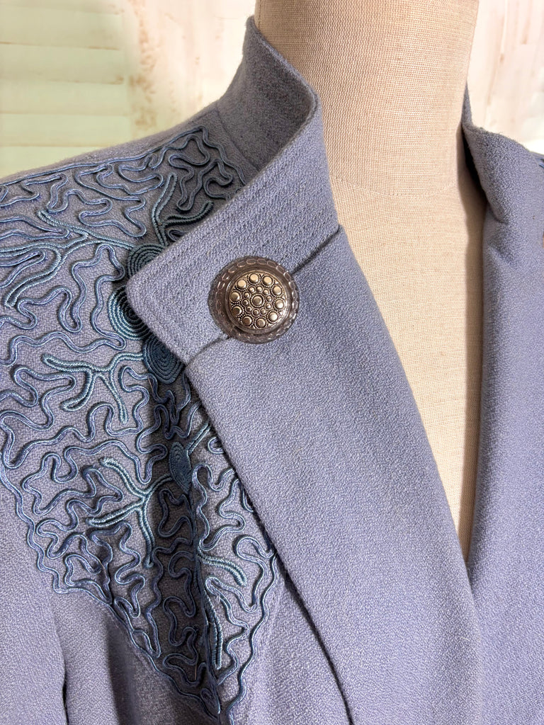 Rare Volup 1940s Periwinkle Lilac Clutch Coat With Soutache Embroidery