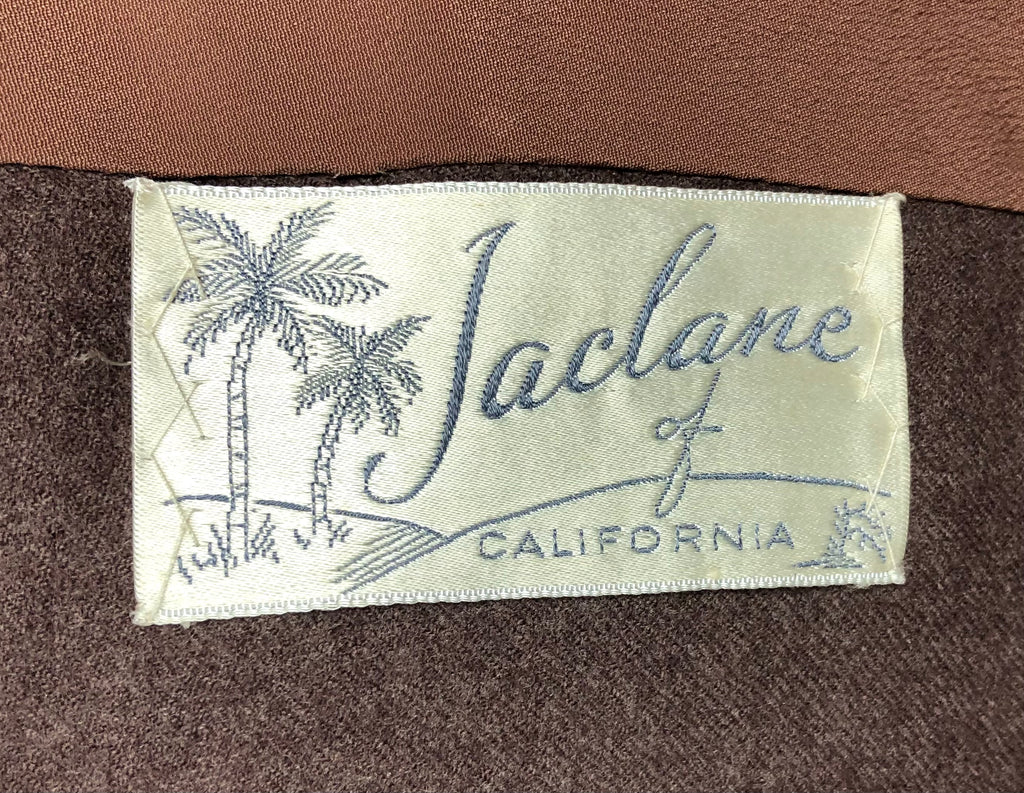 Carrying the Jaclane of California label along with the Adler’s retailer’s tag, this suit reflects both West Coast design and department store prestige. A true piece of mid-century fashion history.