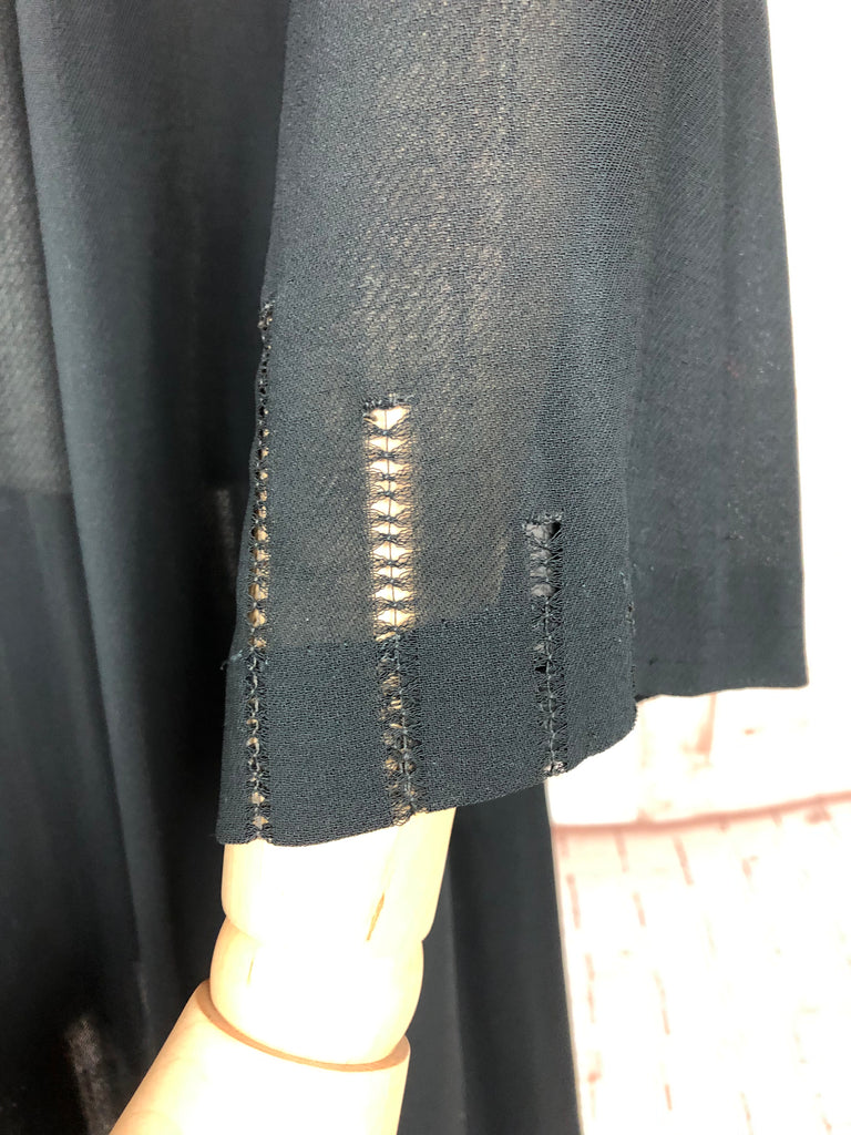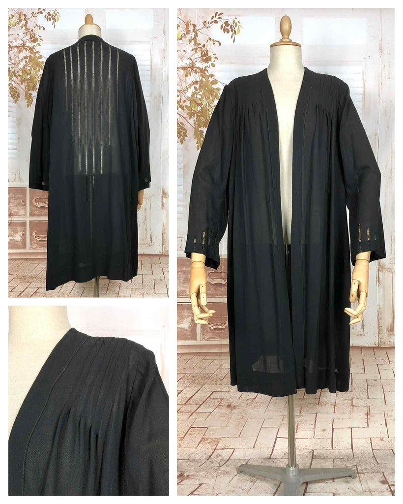 1930s Lightweight Black Crepe Coat with Pintuck and Open Work Detailing