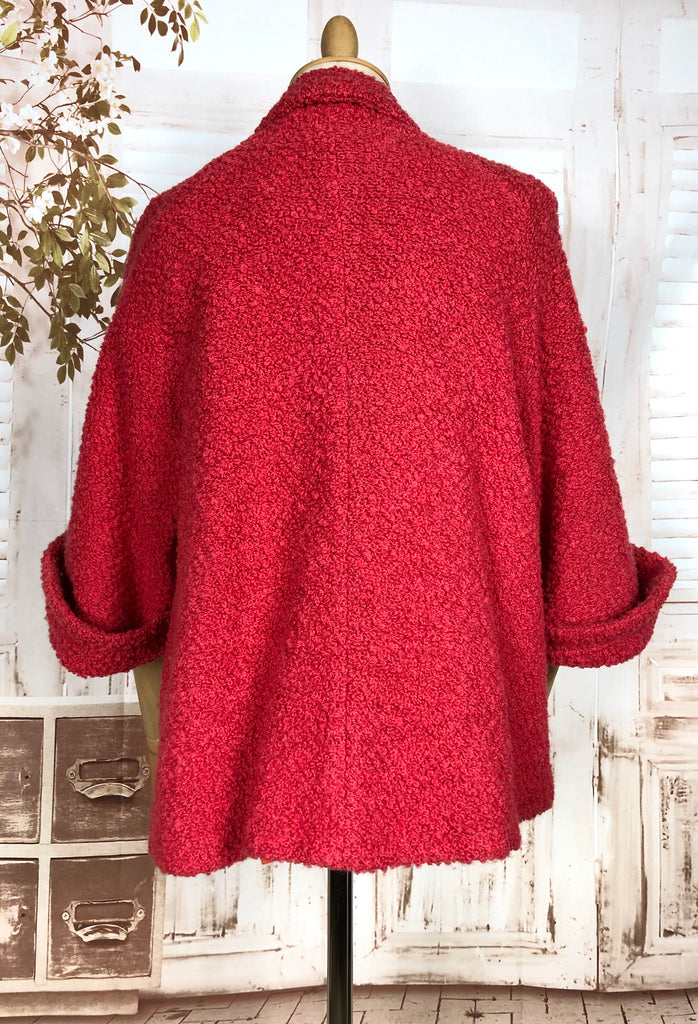 Fabulous Lipstick Red Late 1940s / Early 1950s Boucle Swing Coat