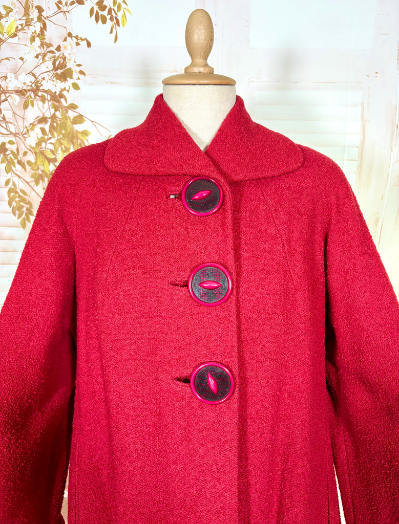 Lipstick Red Late 1940s / Early 1950s Volup Swing Coat By Rothmoor