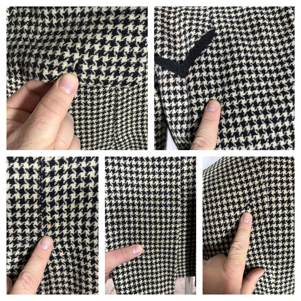 - Material: Wool houndstooth, lined in crepe
