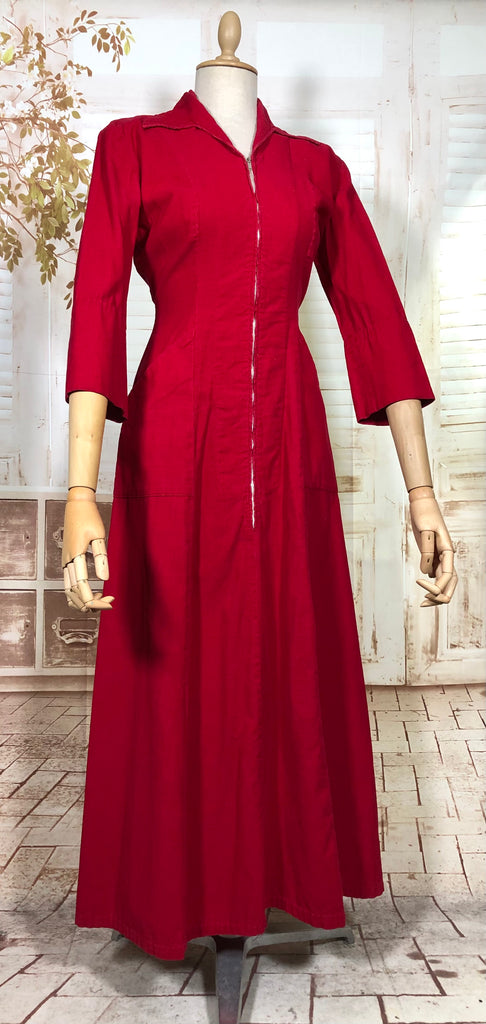 Amazing Lipstick Red 1940s Corduroy Zip Front Dress
