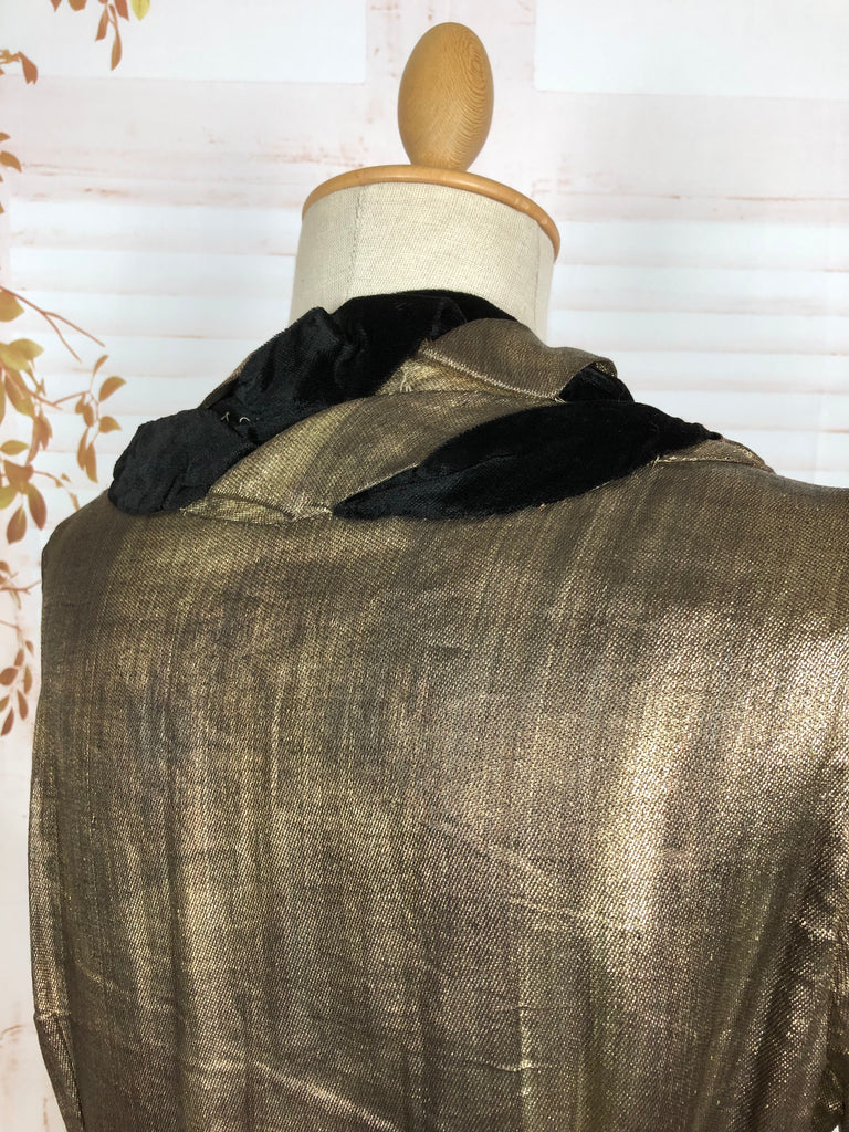 1920s Gold Lamé Tunic with Braided Velvet Collar