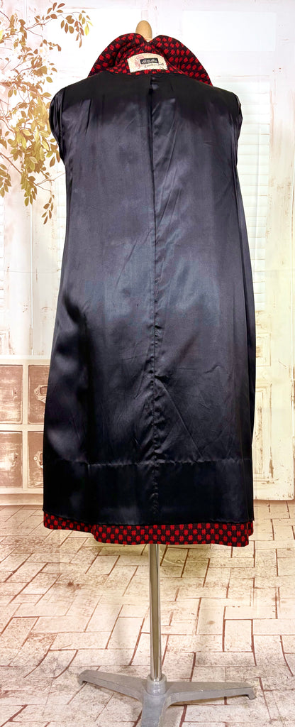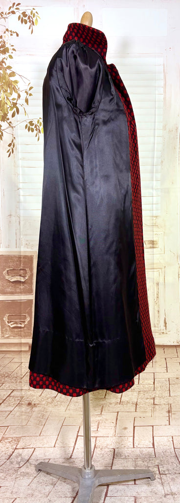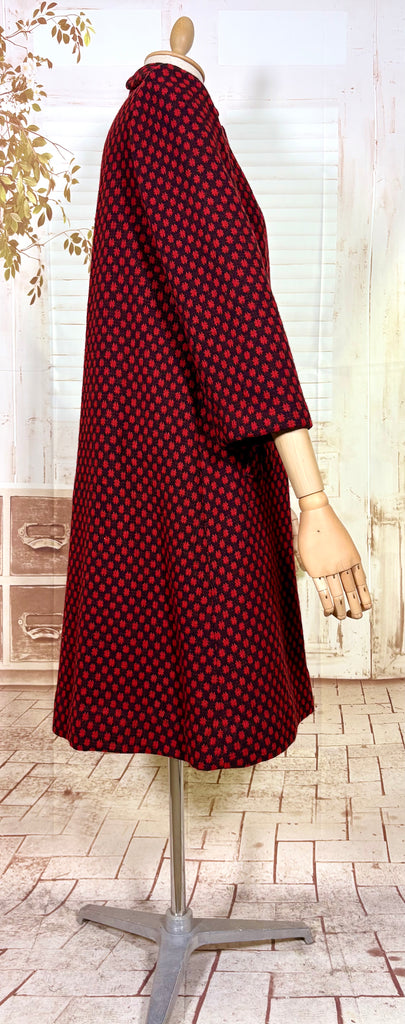 Late 1940s Betty Rose Red & Black Patterned Coat