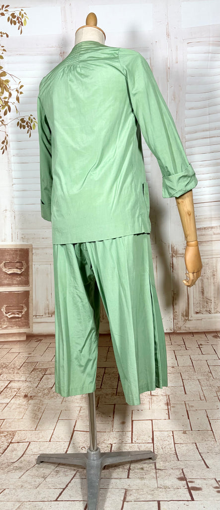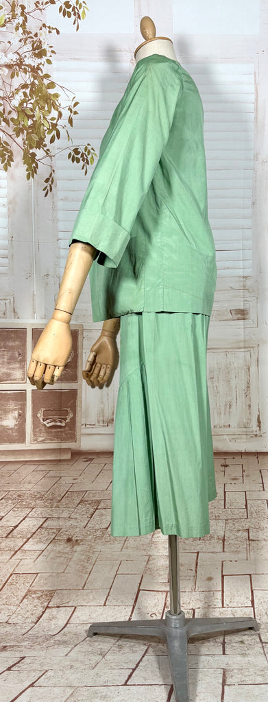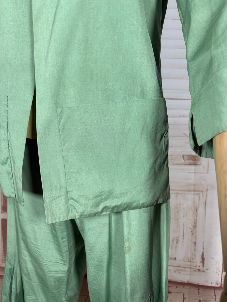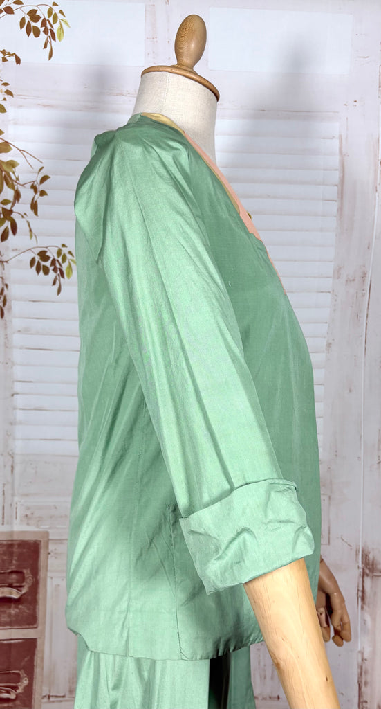 Complete 1920s silk beach pyjama sets of this quality and rarity are increasingly hard to find. Whether destined for a serious vintage collection, archival display, or styled carefully for modern wear, this piece represents the height of Jazz Age leisure fashion. Wear the pieces together for maximum impact, or style separately to bring authentic 1920s elegance into a contemporary wardrobe.