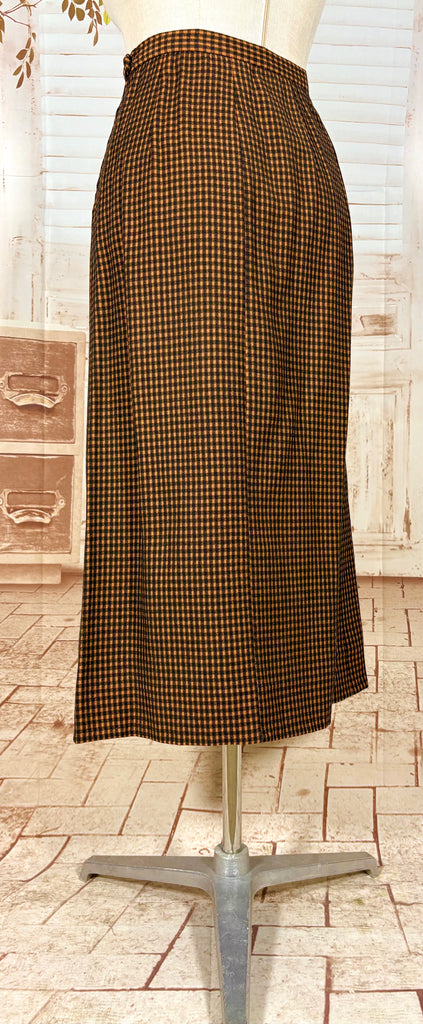 1940s Pumpkin Orange Check Skirt Suit – Tailored Hourglass Silhouette