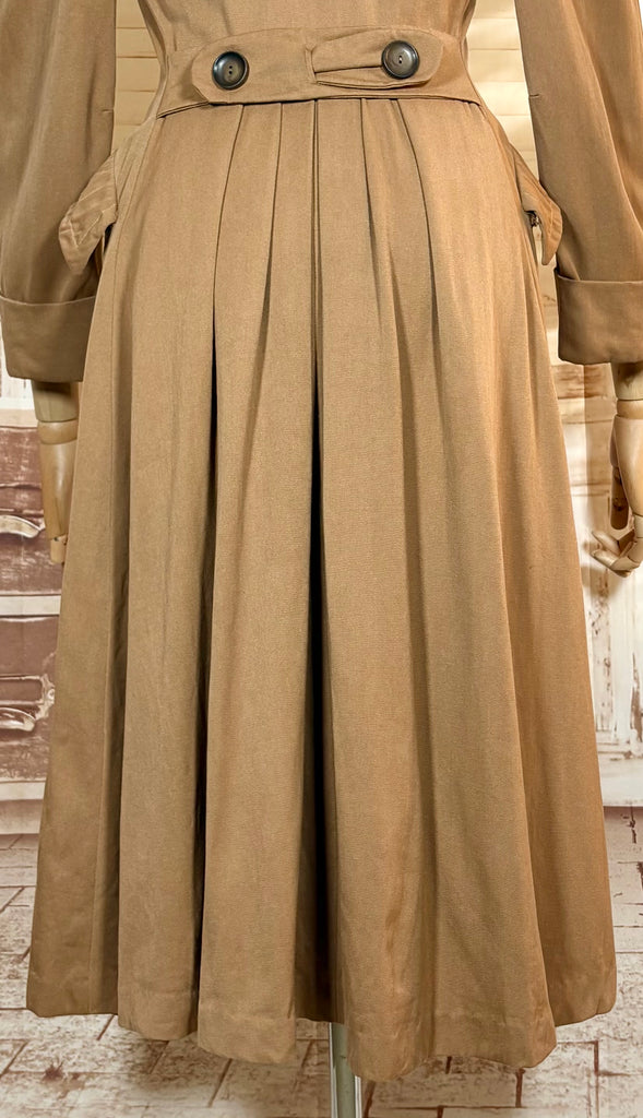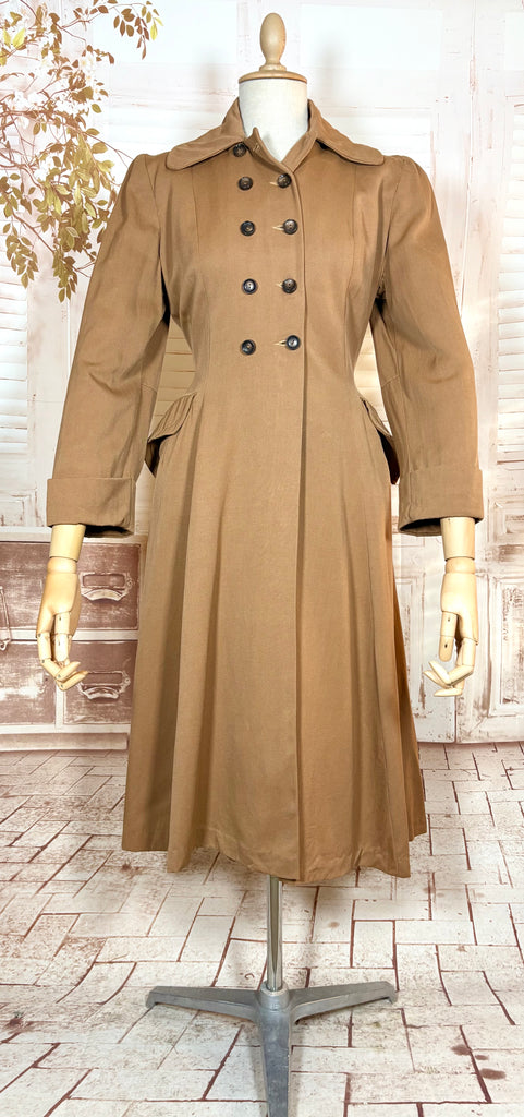 Exquisite 1940s Milk Chocolate Gabardine Belt Back Princess Coat
