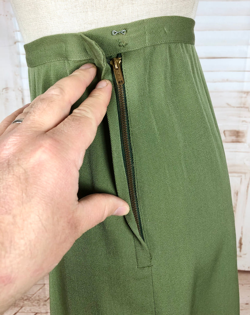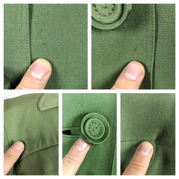 This suit is a head-turner for the vintage collector who loves crisp tailoring with a twist. The vivid green is rare for the era, offering a fresh take on traditional 1940s style. Pair it with classic pumps or modern block heels for a museum-worthy look that still feels wearable today.