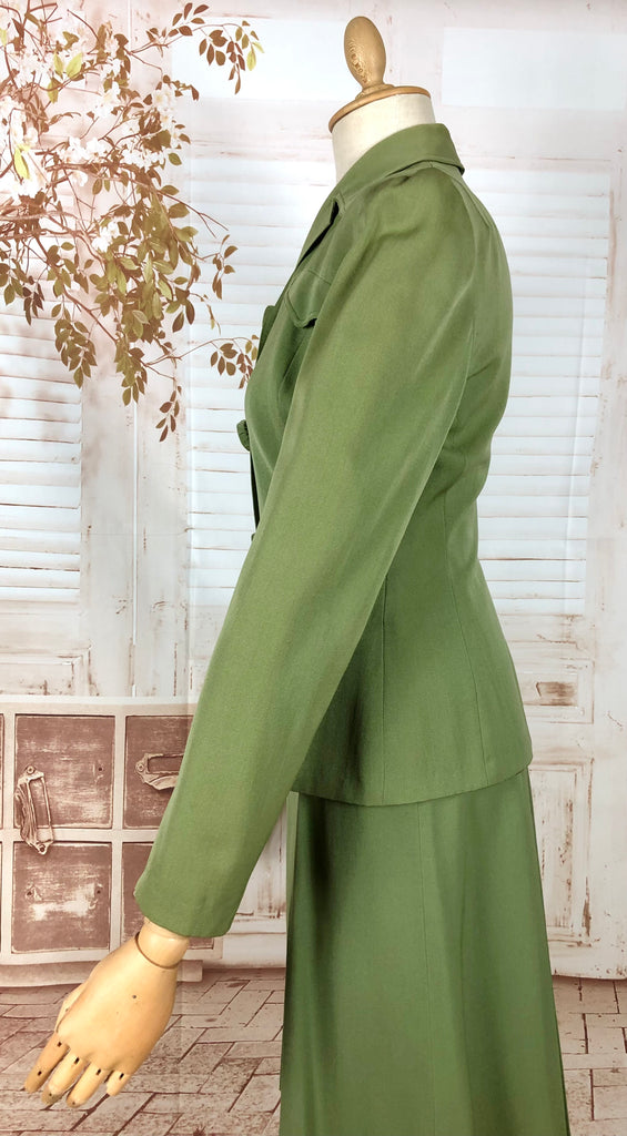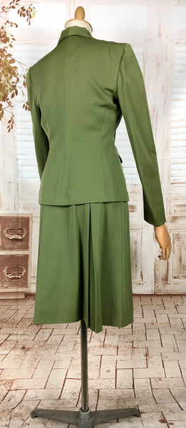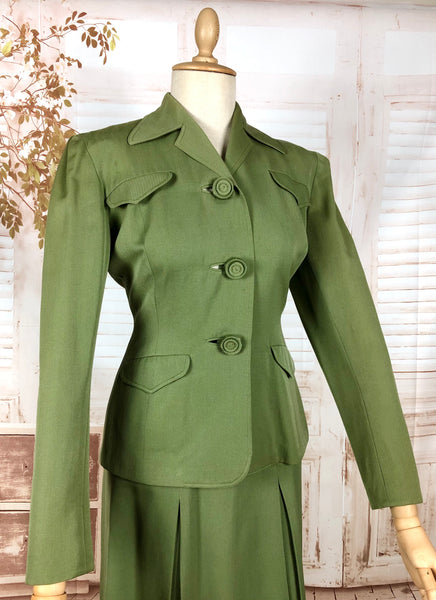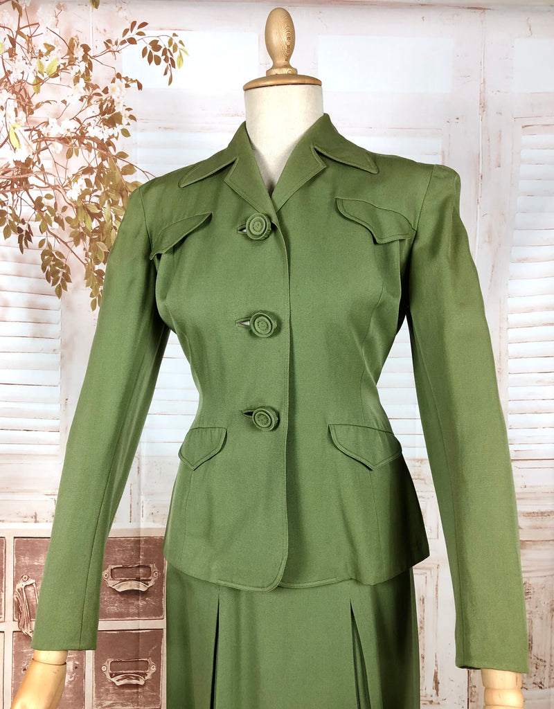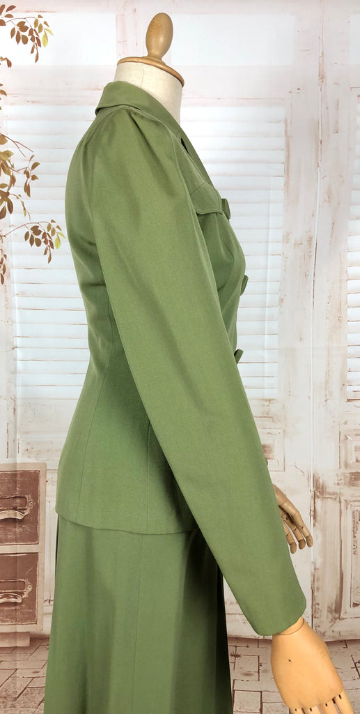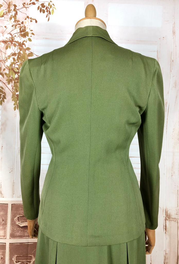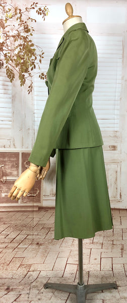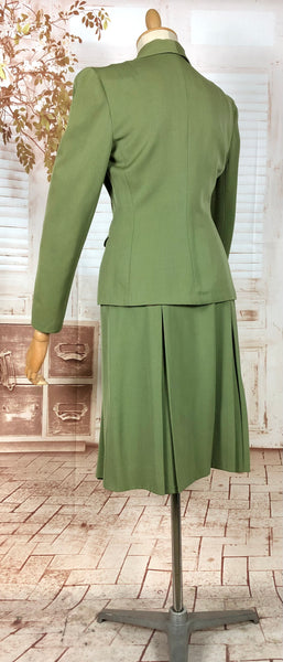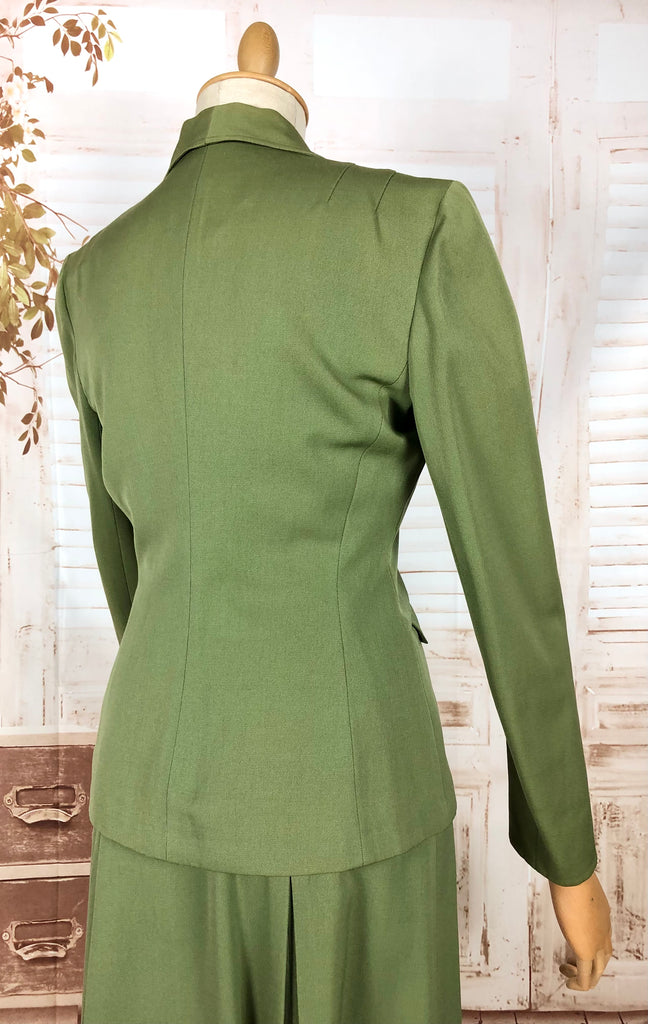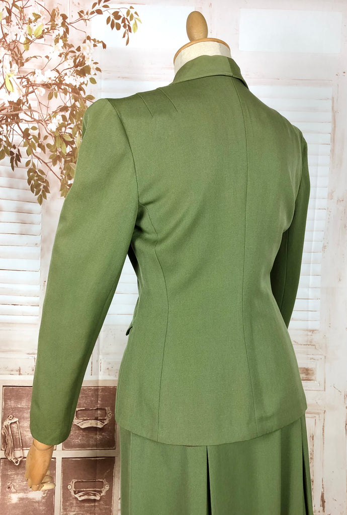 Exquisite Spring Green 1940s Vintage Gabardine Skirt Suit
