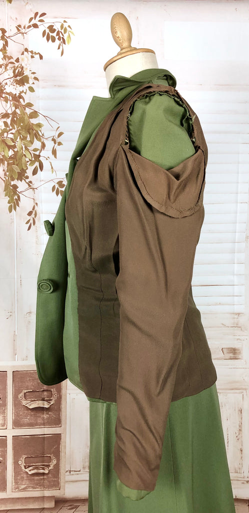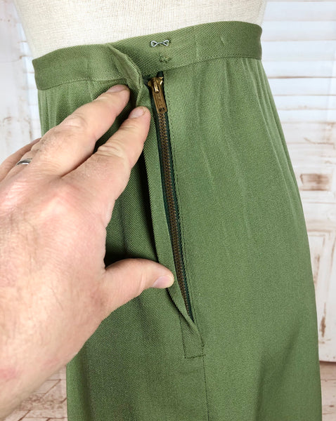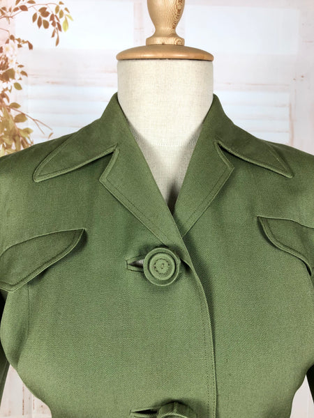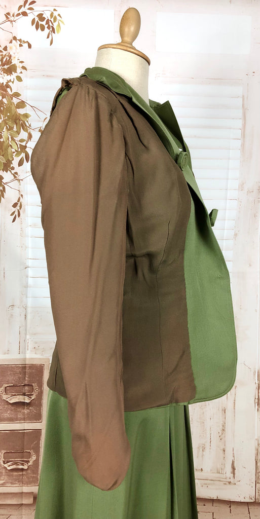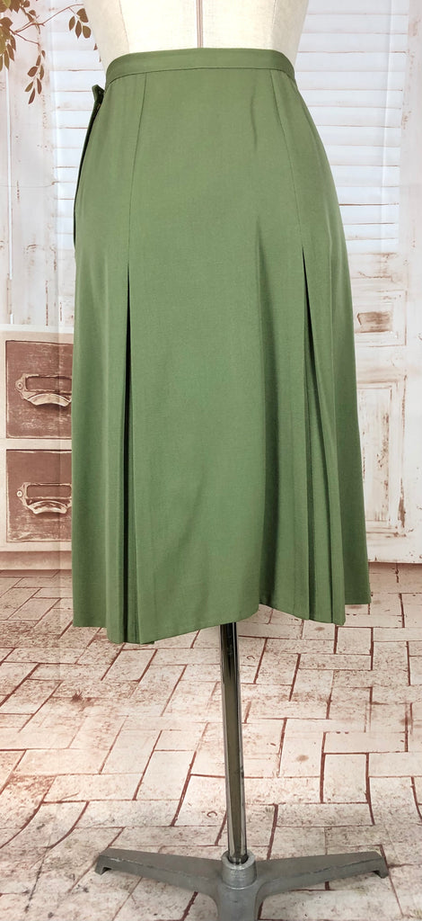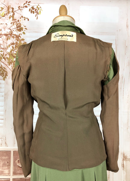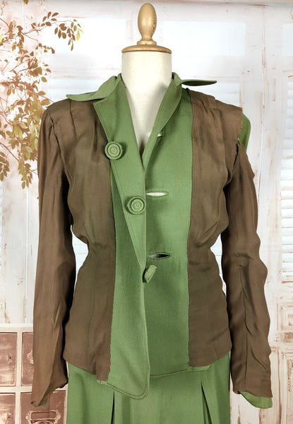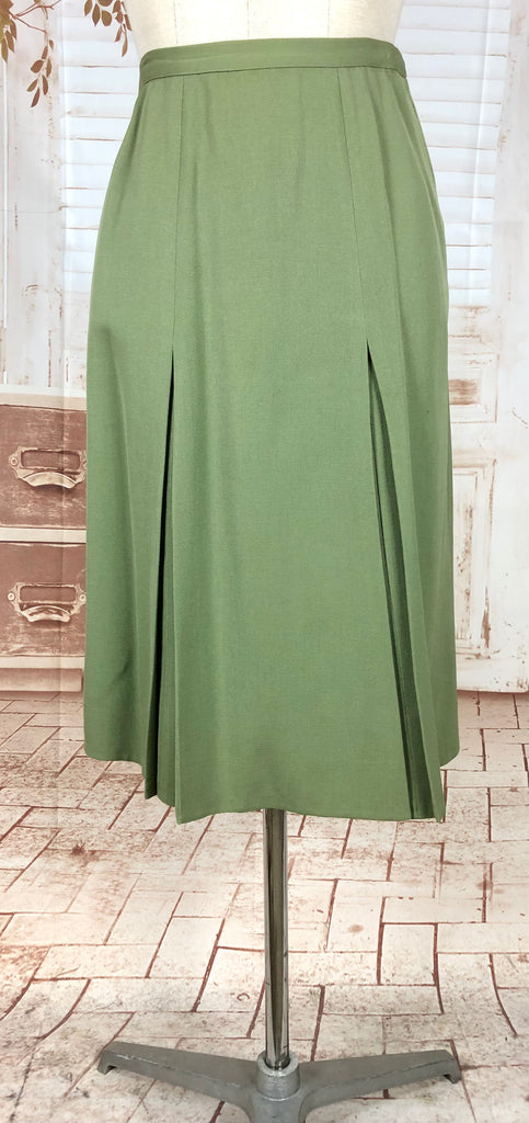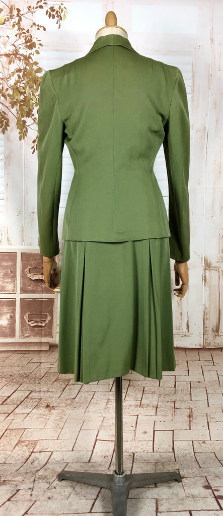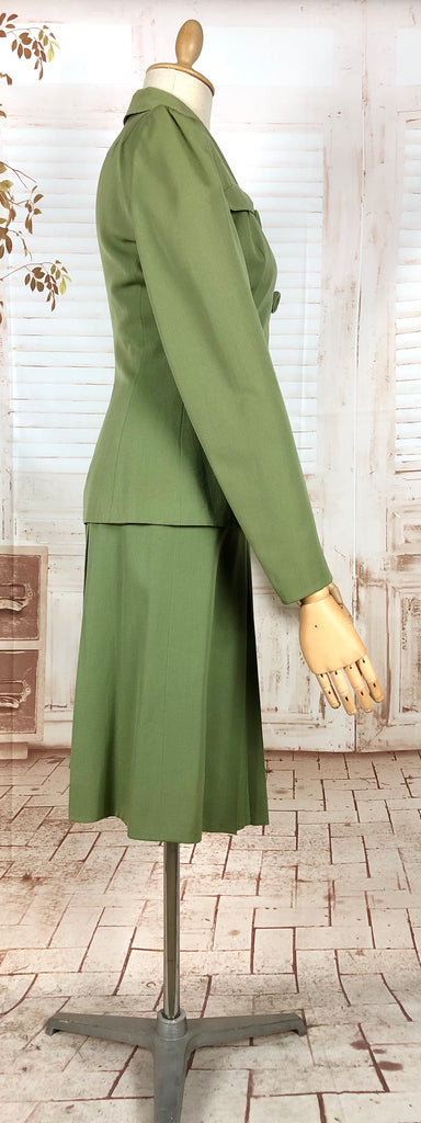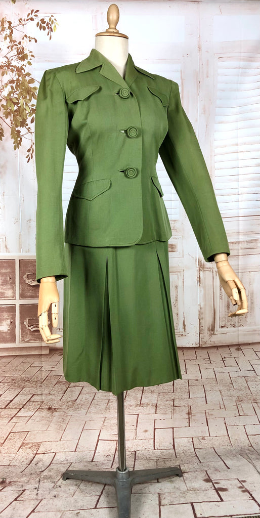 Exquisite Spring Green 1940s Vintage Gabardine Skirt Suit
