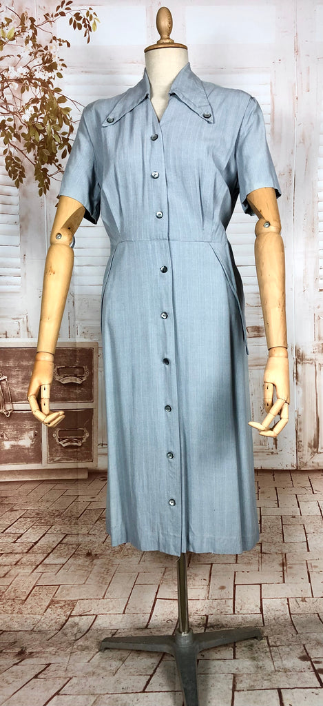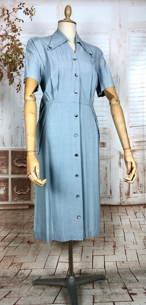 Original 1940s Volup Pinstriped Shirtwaister Dress With Sharp Dagger Collar