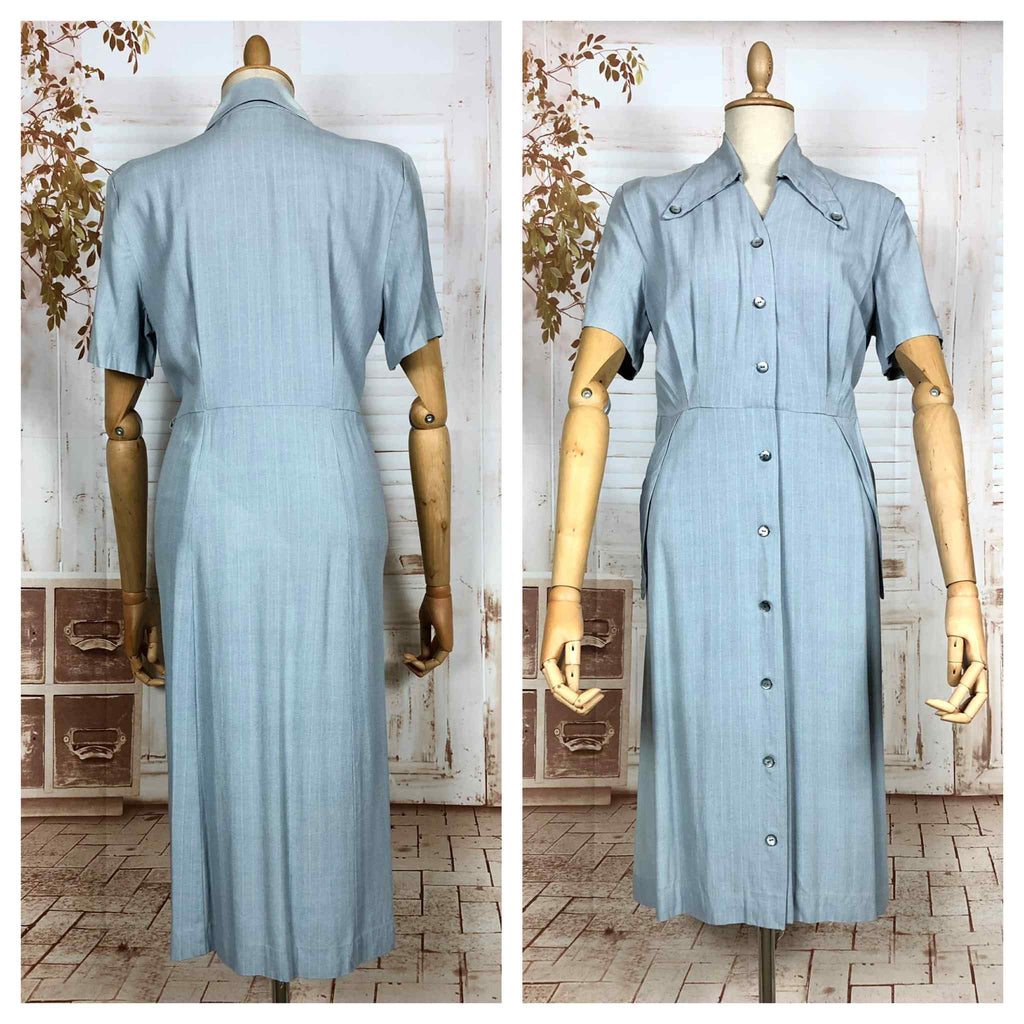 1940s Dove Grey Shirtwaister Dress with Dagger Collar, Decorative Buttons & Sharp Pocket Detail
