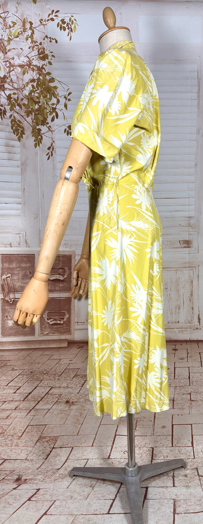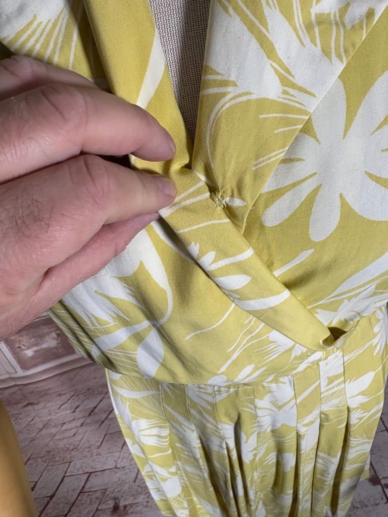 Stunning Chartreuse Abstract Floral Print 1940s Dress