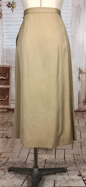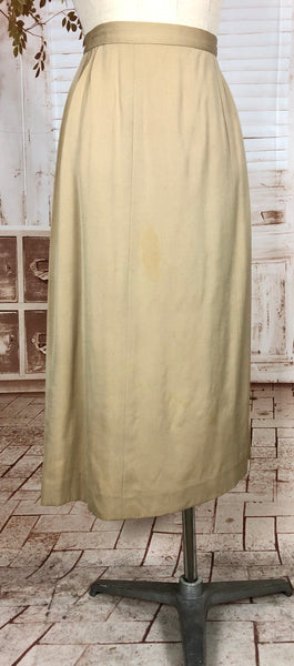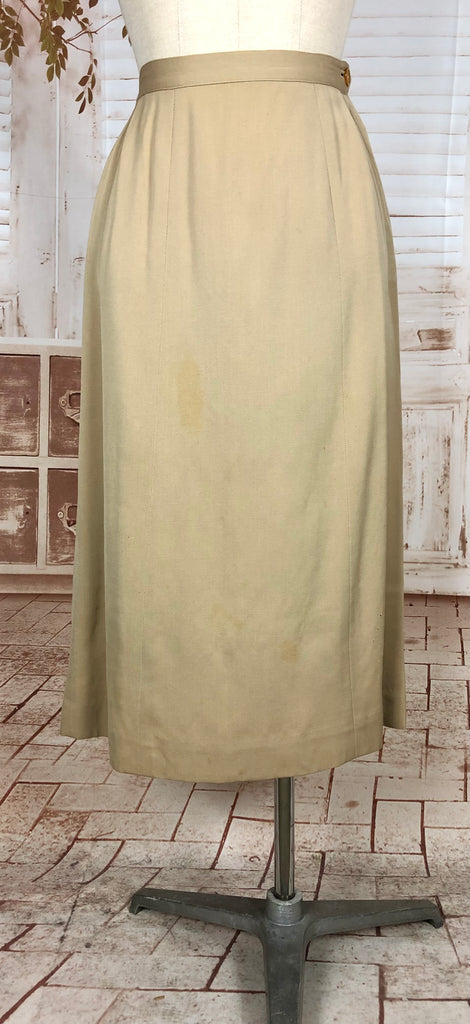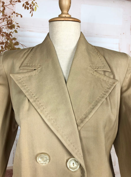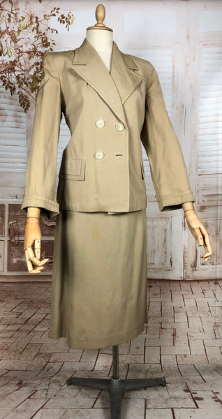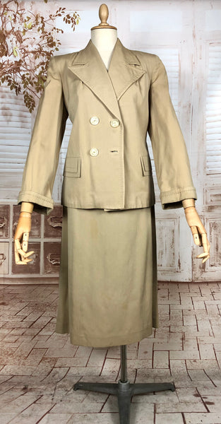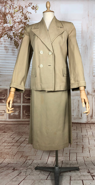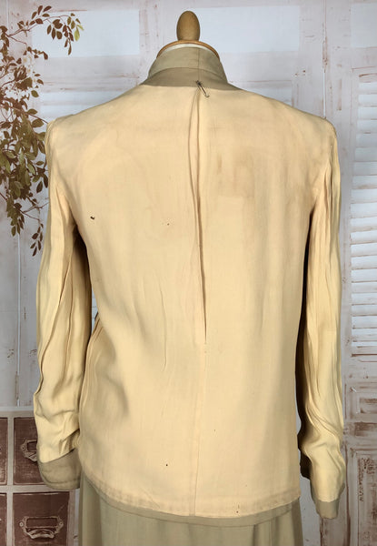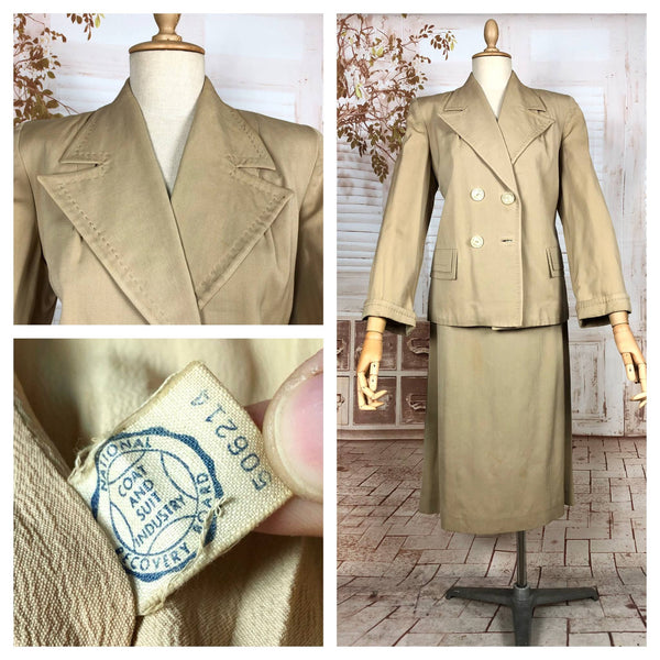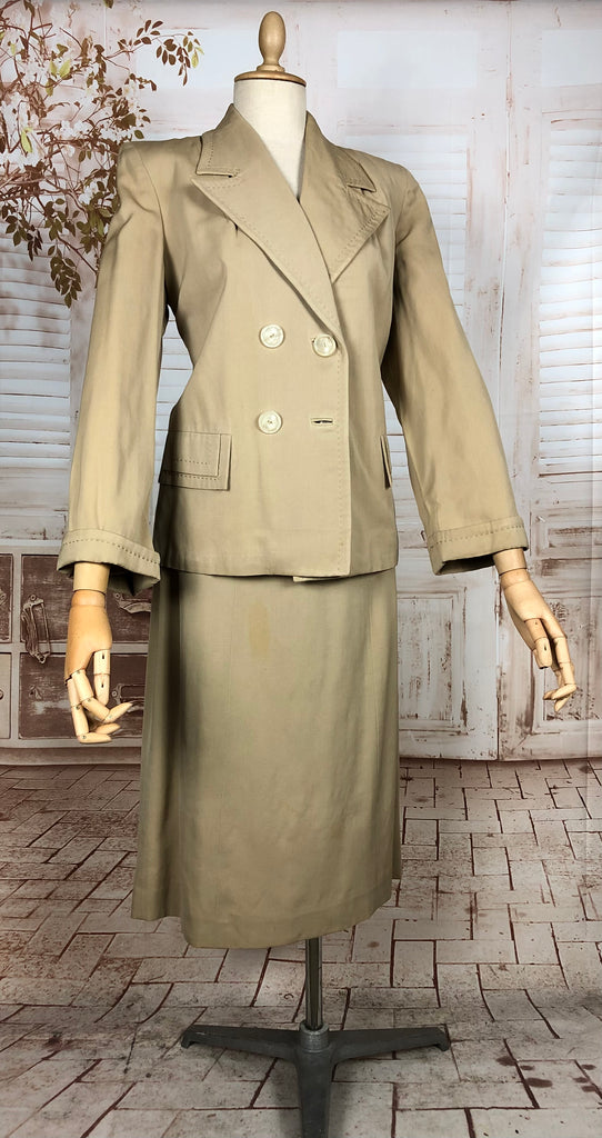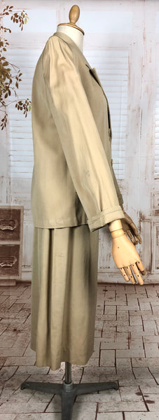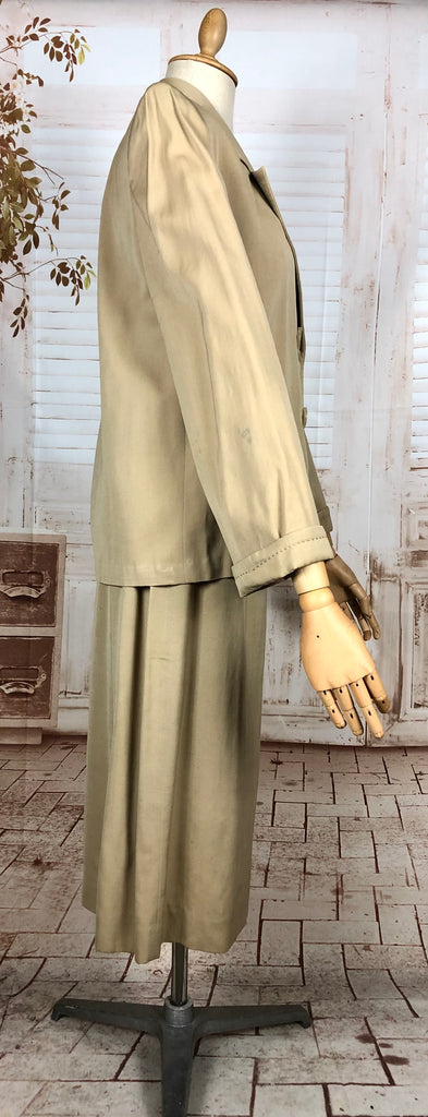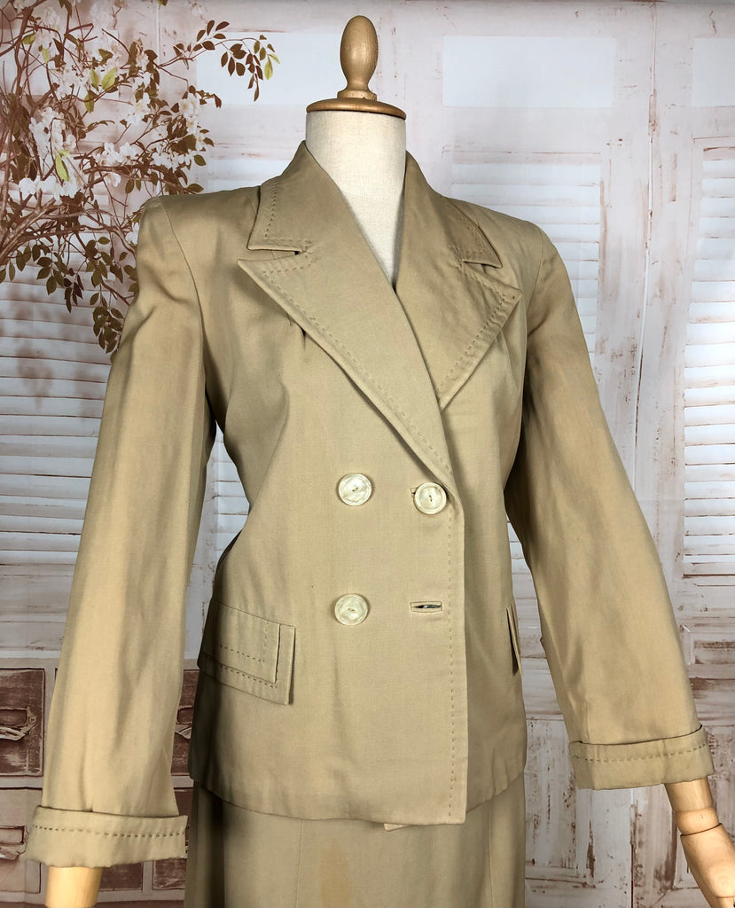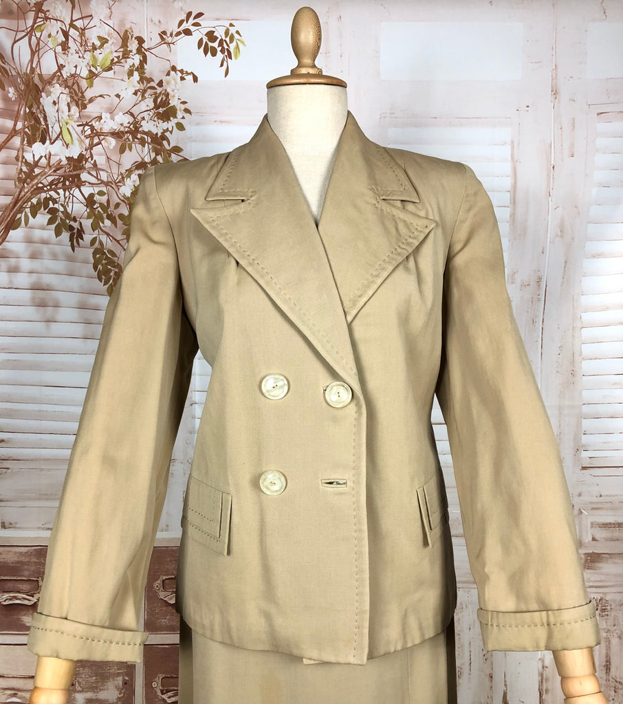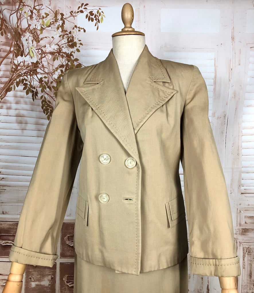 1930s Warm Beige Double-Breasted Skirt Suit with Hand-Stitched Details